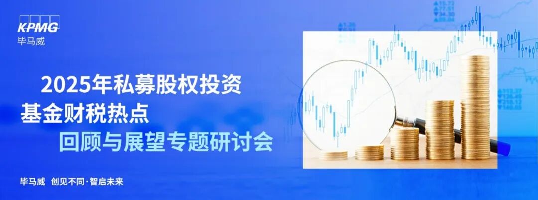 随着资本市场深化改革持续推进,私募股权投资(PE)行业在监管环境、税收政策及财务处理等方面正面临深刻变革。为帮助业内同仁准确把握2025年关键财税动态,提升合规管理能力与投资决策水平,我们诚挚邀请您参加由毕马威中国税务与财务咨询团队主办的 “2025年私募股权投资基金财税热点回顾与展望”专题研讨会。