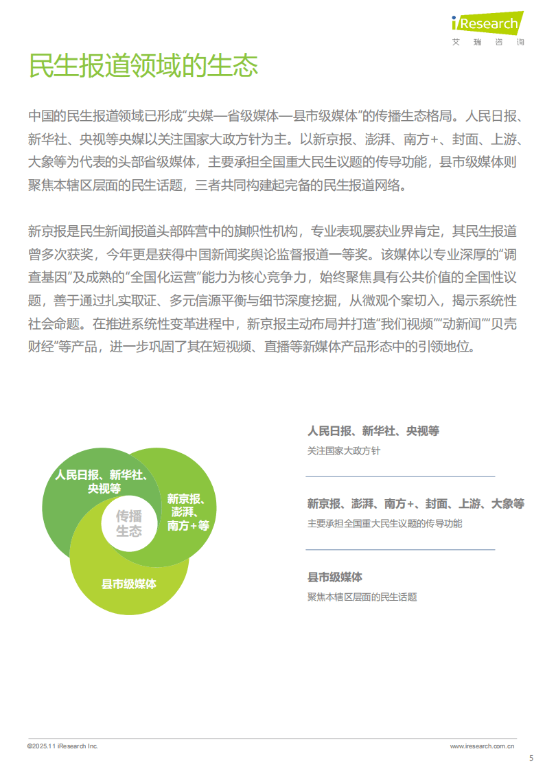 民生新闻报道作为连接社会各方的重要纽带,聚焦群众切身利益,在传递信息、反映诉求、推动问题解决等方面发挥着不可替代的作用。当前,我国已形成“央媒-省级媒体-县市级媒体”的多层级传播生态,新京报等头部媒体凭借专业优势成为行业标杆。
