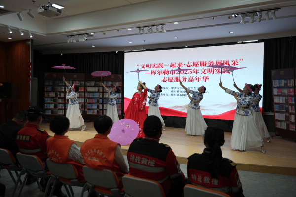 活动在沙画表演《左手指月》中拉开帷幕。萨依巴格街道梨城艺术团的《欢聚一堂》与建设街道桃枝芳菲舞蹈队的《水韵江南》等节目,以艺术语言展现出新时代文明实践所带来的积极向上精神风貌。随后,工作人员通过PPT系统回顾2025年度工作精彩画卷,集中展示了库尔勒市文明实践志愿服务的丰硕成果与蓬勃活力。一个个深入社区、贴近民生的服务项目,一张张真诚奉献、挥洒汗水的志愿者面孔,生动诠释着“奉献、友爱、互助、进步”的志愿精神。
