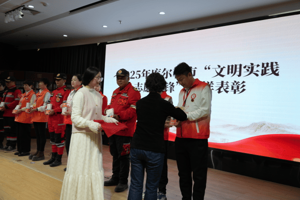 活动中穿插知识问答与趣味抢答环节,现场观众踊跃参与,在轻松愉快的互动中加深了对新时代文明实践内涵的理解。活动还对荣获2025年度“文明实践志愿先锋”称号的优秀志愿者进行表彰,并向新加入“文明哨”的市民巡访团成员颁发聘书,激励更多人投身文明城市建设和基层社会治理。