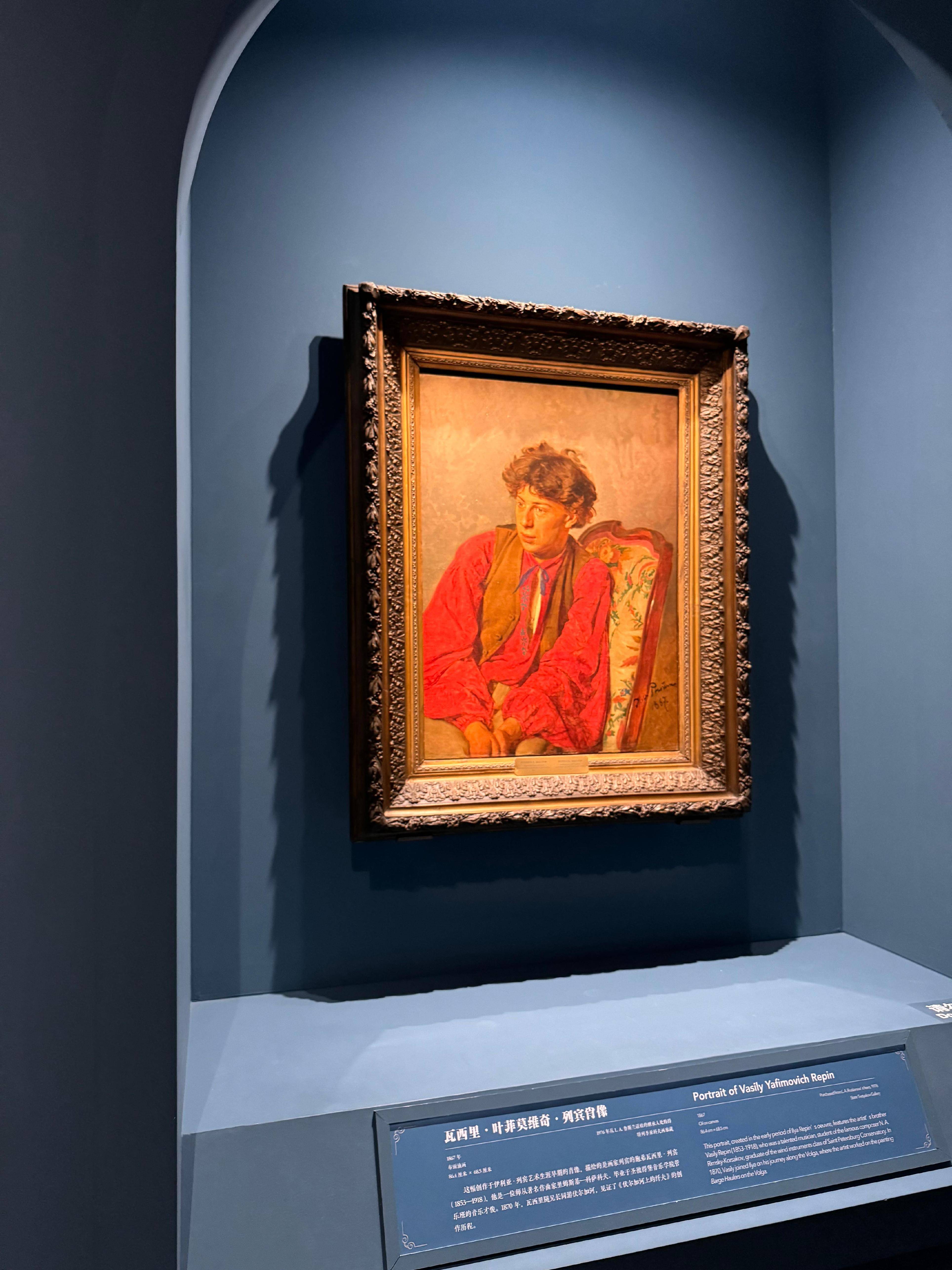 展厅中央,列宾中年时期的自画像静静悬挂。这位曾用画笔记录俄罗斯民族灵魂的艺术家,此刻通过自画像与我们进行着跨越时空的对话。
