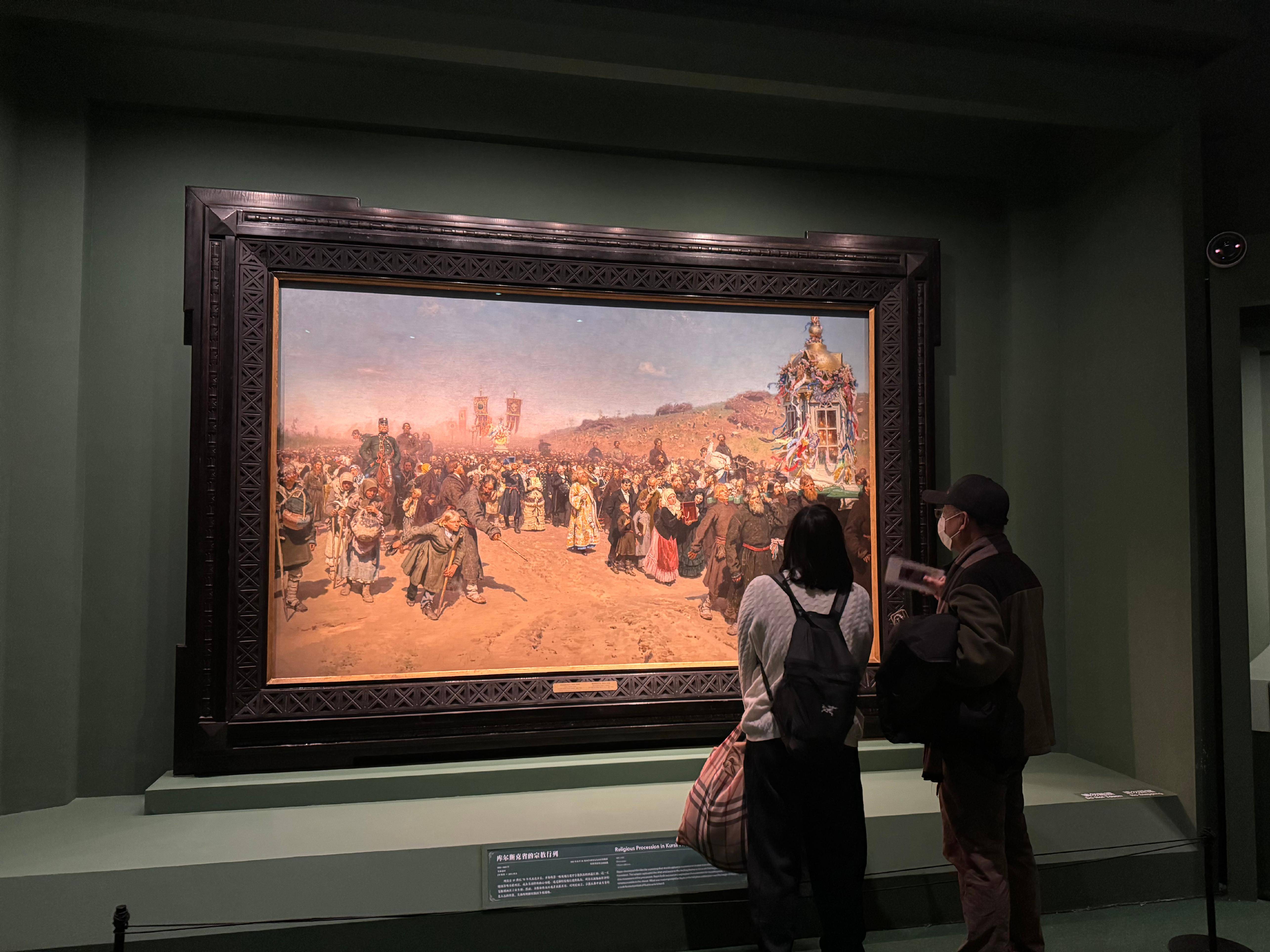 《库尔斯克省的宗教行列》也是本次展览中最大的一幅作品。作为载入俄罗斯史册的作品,展现了列宾对俄罗斯社会各阶层的深刻观察。除了擅长人物肖像画,列宾还擅长历史画和风俗画,展现社会众生相的《库尔斯克省的宗教行列》便属于风俗画。画中驼背人让人印象深刻,这个角色在展览中出现了两次。
