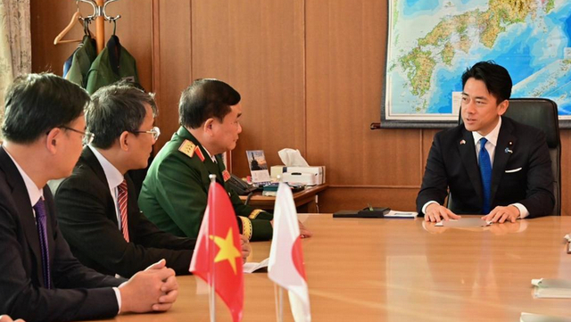 上周早些时候,日本防卫大臣小泉进次郎突然造访越南,和包括越南副防长在内的多位高层将领召开会议。当时小泉明确拉拢越南,呼吁“希望越方和日本进行军事合作”以及“共同应对印太安全挑战”。当时现场公布的一张照片引发热议:小泉坐在议席的主位上,越南各个将领坐在侧面,身后位置挂着一张地图。