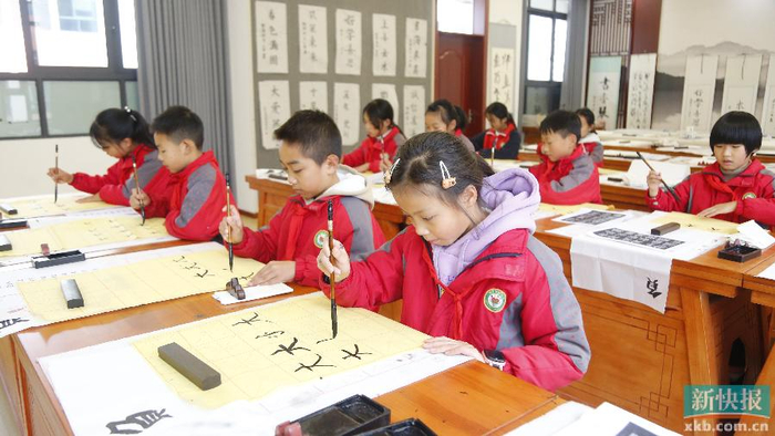 ■孩子们在上书法课。