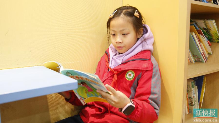 ■一名小学生在图书馆里读书。