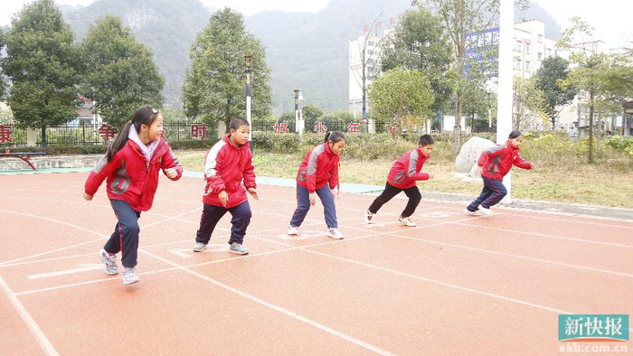 ■孩子们在操场上进行嬉戏。