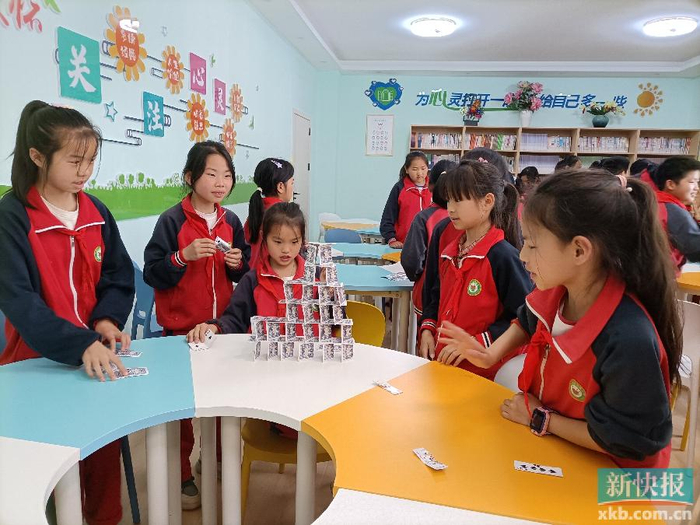 ■学生们在智能化心理成长中心里玩游戏。借助粤黔协作资金,学校还建成书法室、国画室、剪纸室等多功能教室,广州市黄埔区又动员社会力量筹集249万元捐赠资金,完善图书馆、书法室等设施,共同推动学校办学条件实现质的飞跃,助力孩子们在家门口便能享受到更优质的教育资源。