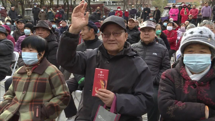 比赛现场咸阳钟楼广场人头攒动,西凤酒精心布置的展台前更是围满了市民,既有等待参赛的选手,也有专程赶来听戏的老戏迷。