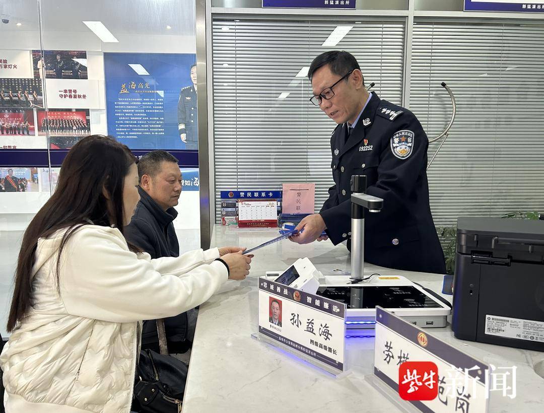 当下,正是身份证换证高峰期,记者在郭猛派出所的户籍办理柜台看到,孙益海正忙碌着。尽管失去了左腿,但丝毫不影响他的坚毅和自信。孙益海说,遇到需要申领身份证的高龄老人或生病群众,他都会上门服务。这些年,他习惯在早晨出门走访群众,帮大家解决实际困难。