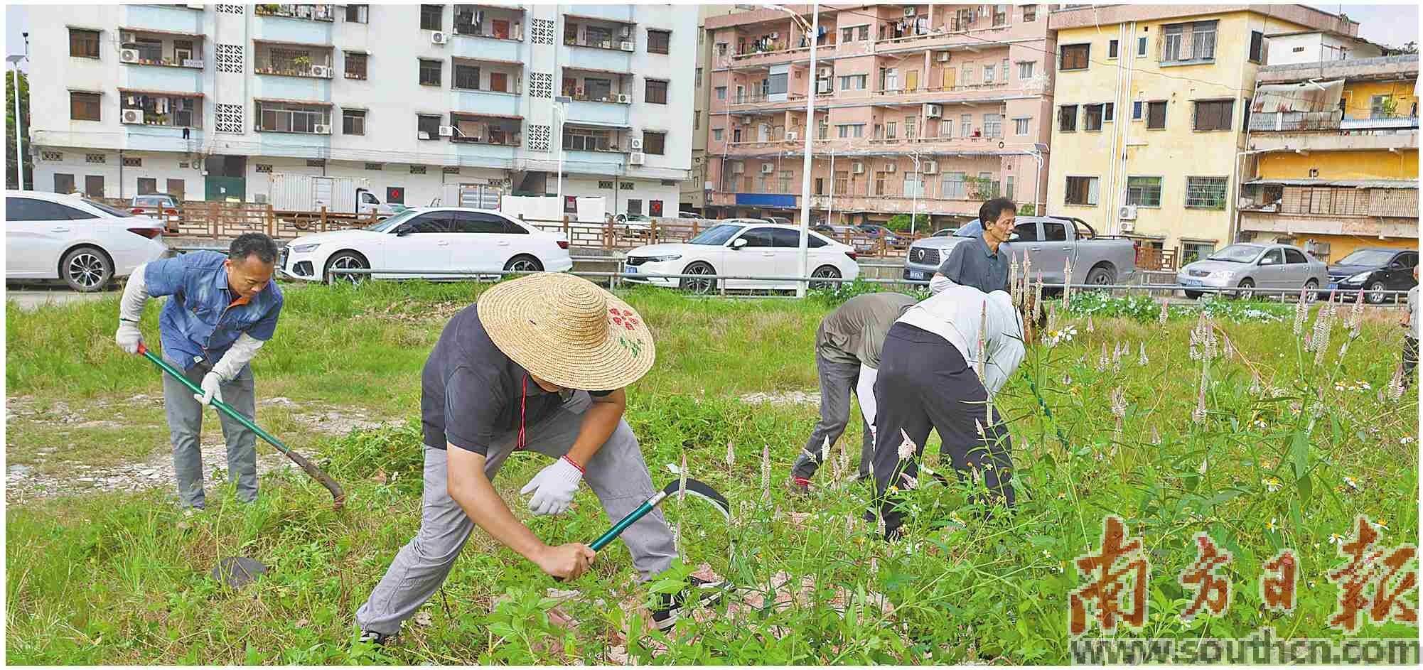 新兴坚持全民总动员,共建美丽健康家园。图为村民群众积极参与环境卫生整治,对闲置地杂草杂物进行清理。