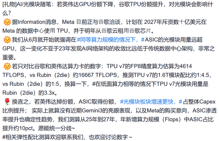 图片说明:某券商认为TPU与光模块配比为1:4.5,数据来源于某券商通信团队
