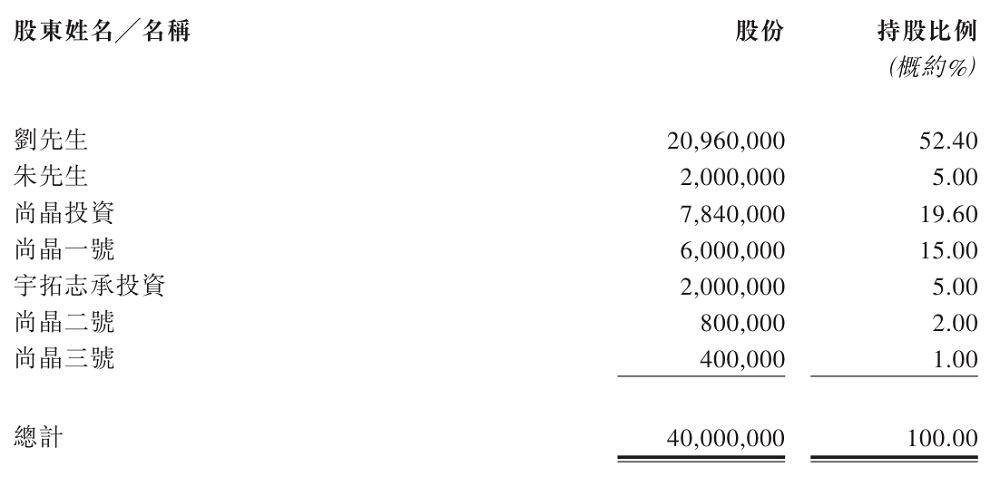 上市后,刘道国、吴映灵、尚晶一号、宇拓志承投资、尚晶二号、尚晶三号及尚晶投资构成尚鼎芯的控股股东组。尚鼎芯此前并未进行外部融资。