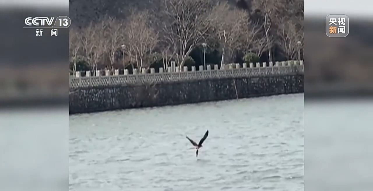 随着物种日渐丰富,南京前湖公园,有人看到了老鹰俯冲捉鱼的场面。