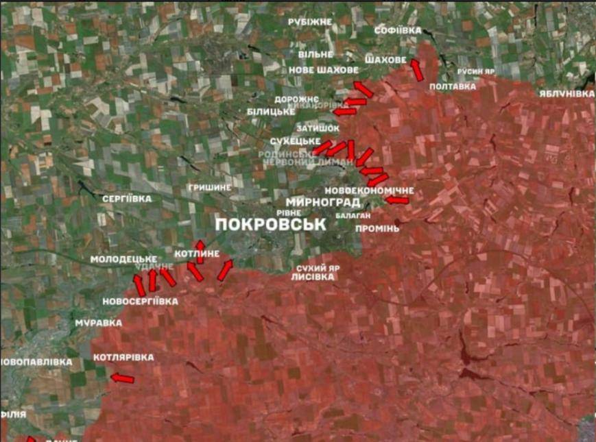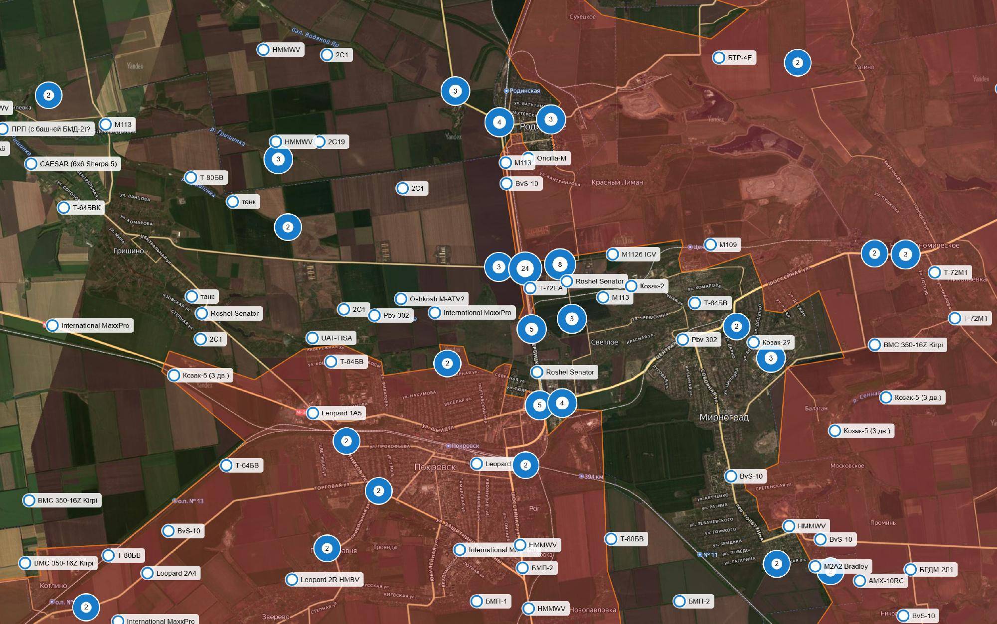 乌克兰武装部队总参谋部公布的地图还是保留红军城市、米尔诺格勒市和罗金西克市