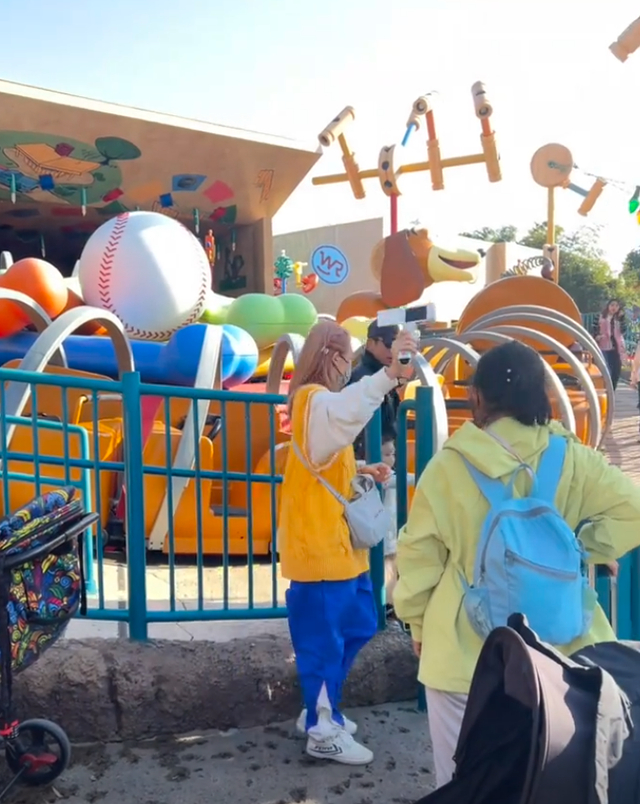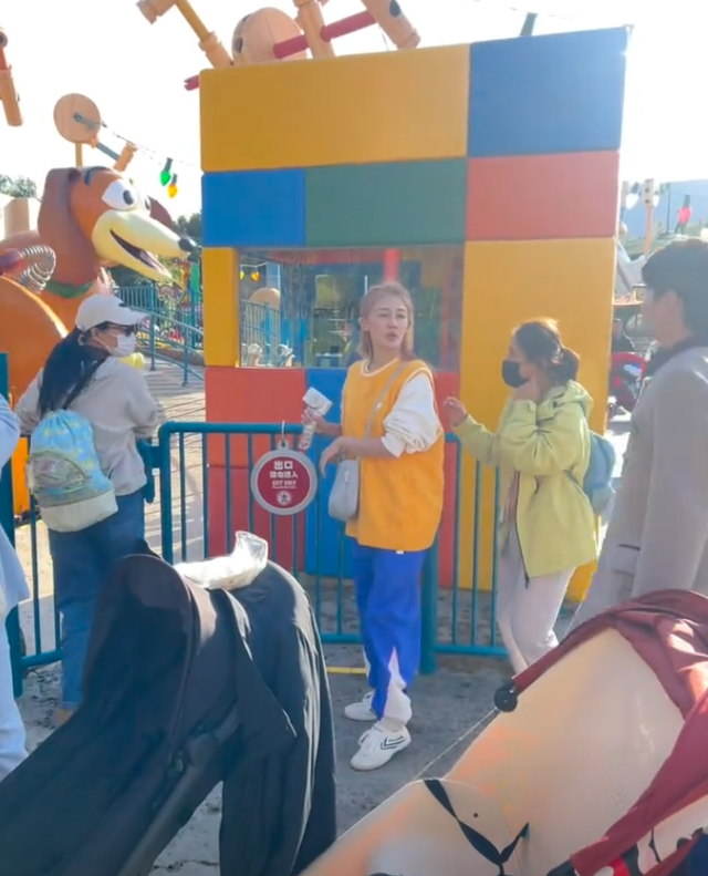 苗苗并没有进入游乐场内部,而是站在出口处等着老公和孩子。从图片中可以清楚看见,苗苗当时有拿相机拍摄,所以相信过不了多久,苗苗就会晒出他们一家四口一起迪士尼游玩的视频了。