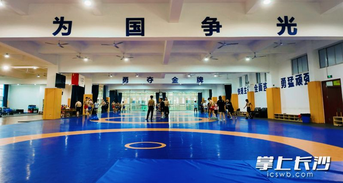 长沙市贺龙体育运动学校摔跤馆内,四五十名穿着摔跤服的学生正在两两捉对厮杀,摔跤垫上砸出的响声此起彼伏,溅起星星点点的汗水。