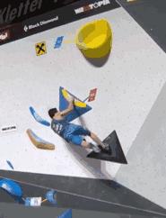英国选手 Nathan Philips 的名字出现在决赛名单中,多少让人感到意外。要知道,他可是打败了我们熟悉的 Jakob Schubert、Adam Ondra、Jan Hojer、Tomoa Narasaki 楢崎智亜、Jernej Kruder 等一众高手晋级决赛的。他完成的三条线路,几乎都是最后几秒的压哨绝杀。