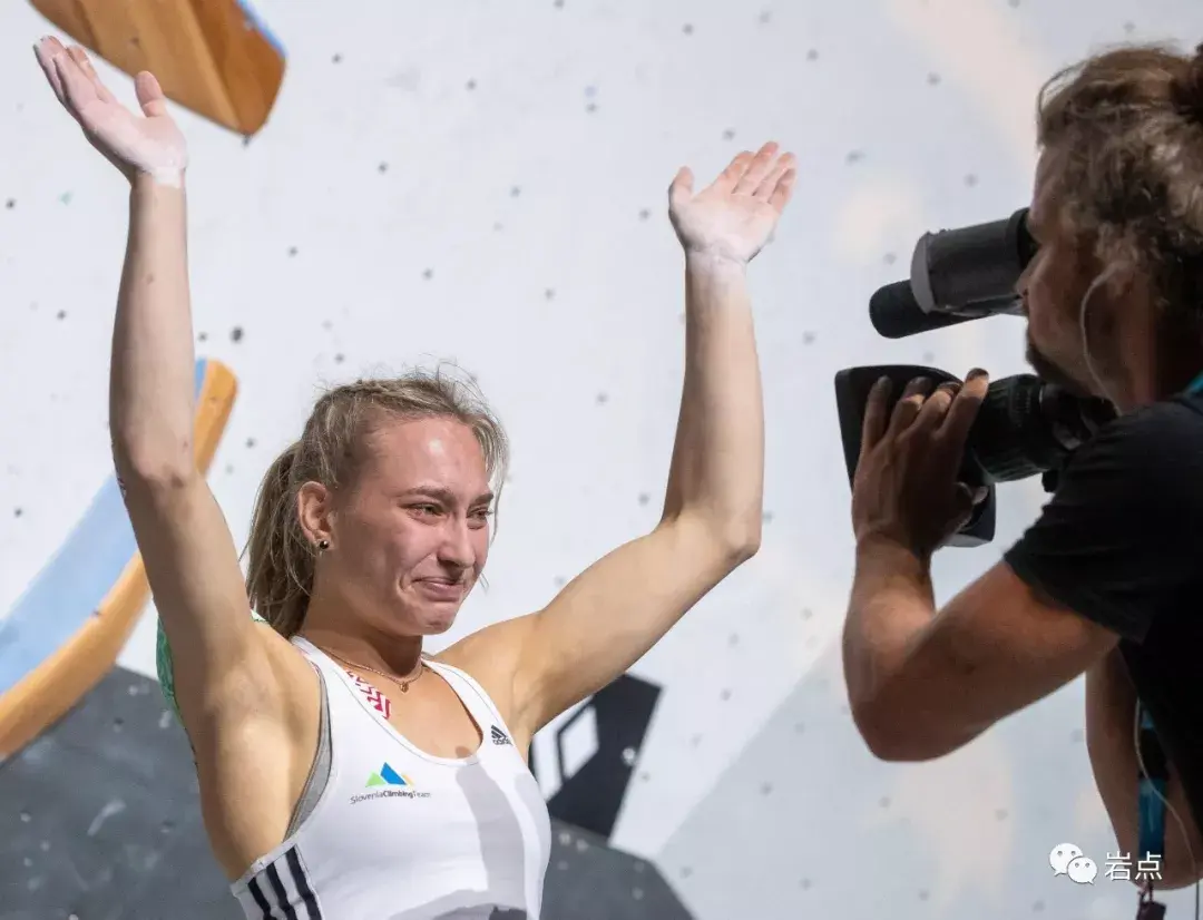 凭借领先 Akiyo Noguchi 野口啓代一个得分点,Janja Garbret 夺得攀石项目世界冠军!这个斯洛文尼亚女孩在本次攀石比赛预赛、半决赛和决赛每个轮次均排名第一,冠军之位实至名归。