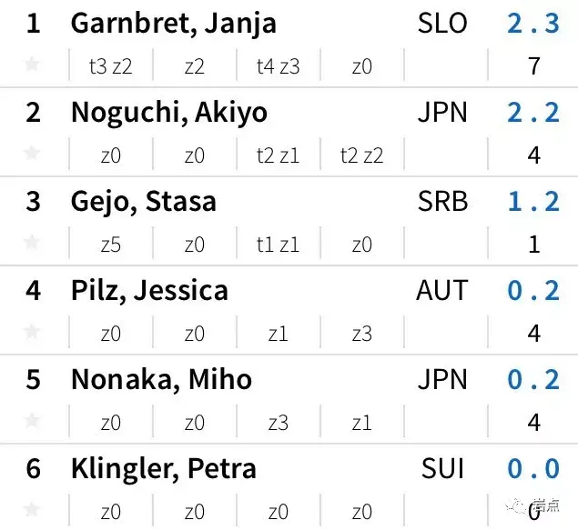 延续了世锦赛线路偏难的一贯传统,6 名决赛选手一共只拿到了 5 个完攀,其中 Janja 取得 2 个完攀,3 个得分点,发挥出色!特别是一号线,她像橡皮筋一样的极佳身体弹性和身体协调性,完美地契合了线路的走向,攀爬如行云流水,令人叹为观止!
