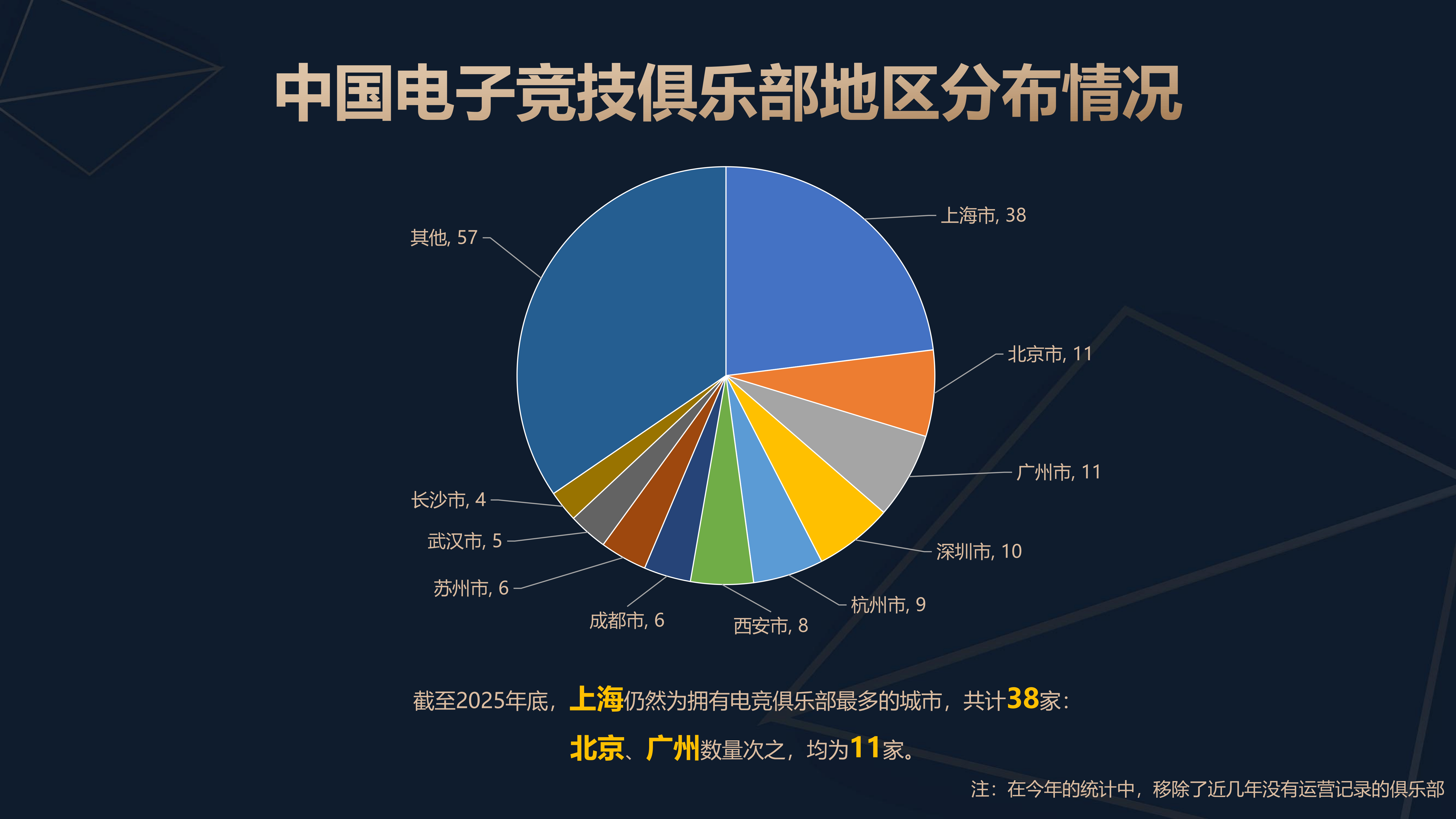 同时,全国电竞俱乐部总数达165家,上海以集群优势居首,北京、广州、深圳紧随其后。54.3%的俱乐部专注单一赛事,22.8%参与两类赛事,多元化参赛趋势显现。