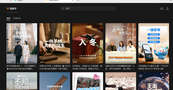 小编留意到龙湖的官方视频号,已经发布了多场直播预告短片,出镜的大多数都是龙湖自己的员工,还是有点那个专业味道,有电影感。