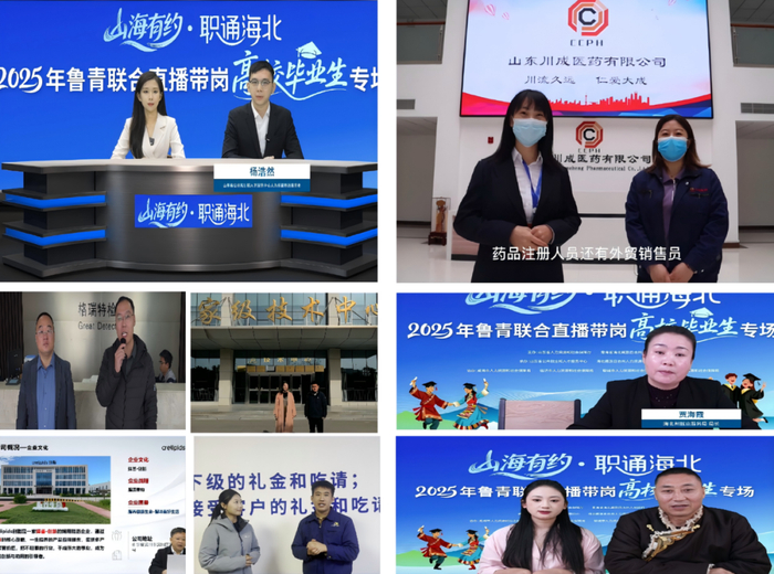 系列直播带岗活动主要呈现三个方面特点:一是岗位挖掘更加精准。按照“质量优先、供需适配、普惠导向”的原则,组织威海、临沂、聊城、滨州四市对有意愿招用特别是现有吸纳青海籍务工人员的企业进行摸底,精心遴选16家优质企业,提供涵盖制造业、服务业、现代农业等领域近1000个就业岗位,其中技能型岗位占比达50%以上,精准匹配受援地农牧民和高校毕业生的就业需求。二是对接形式更加高效。创新采用“双地主播+宣讲推介+入企探岗”模式,山东主演播室与海北州双语直播间、威海等四市探岗团队实时联动,通过虚拟演播厅技术实现场景无缝切换,求职者足不出户即可观看企业实景展示,了解车间环境、食宿条件、晋升通道等关键信息,并用通俗语言讲解两地就业创业优惠政策,直播活动累计吸引超100万人次在线观看,1000余名青海籍求职者参与线上求职互动,真正实现“屏对屏”对接、“心贴心”服务。三是宣传发动更有温度。录制鲁青对口支援工作宣传片,生动呈现对口援青工作成效,展现在鲁务工人员风采,营造来鲁就业创业、乐业兴业的浓厚氛围;提前制作统一的主题海报、岗位预告短视频等宣传物料,依托两地人社系统官网、抖音号等平台,分批次、分时段推流宣传,扩大信息覆盖面,引导更多青海籍求职者关注和参与活动。